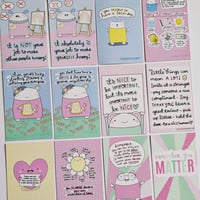A set of eleven mini tini reminders that are the perfect size to tuck in your pocket, pop in your purse, use as a bookmark or for journalling/sharing with pals... the possibilities are endless!